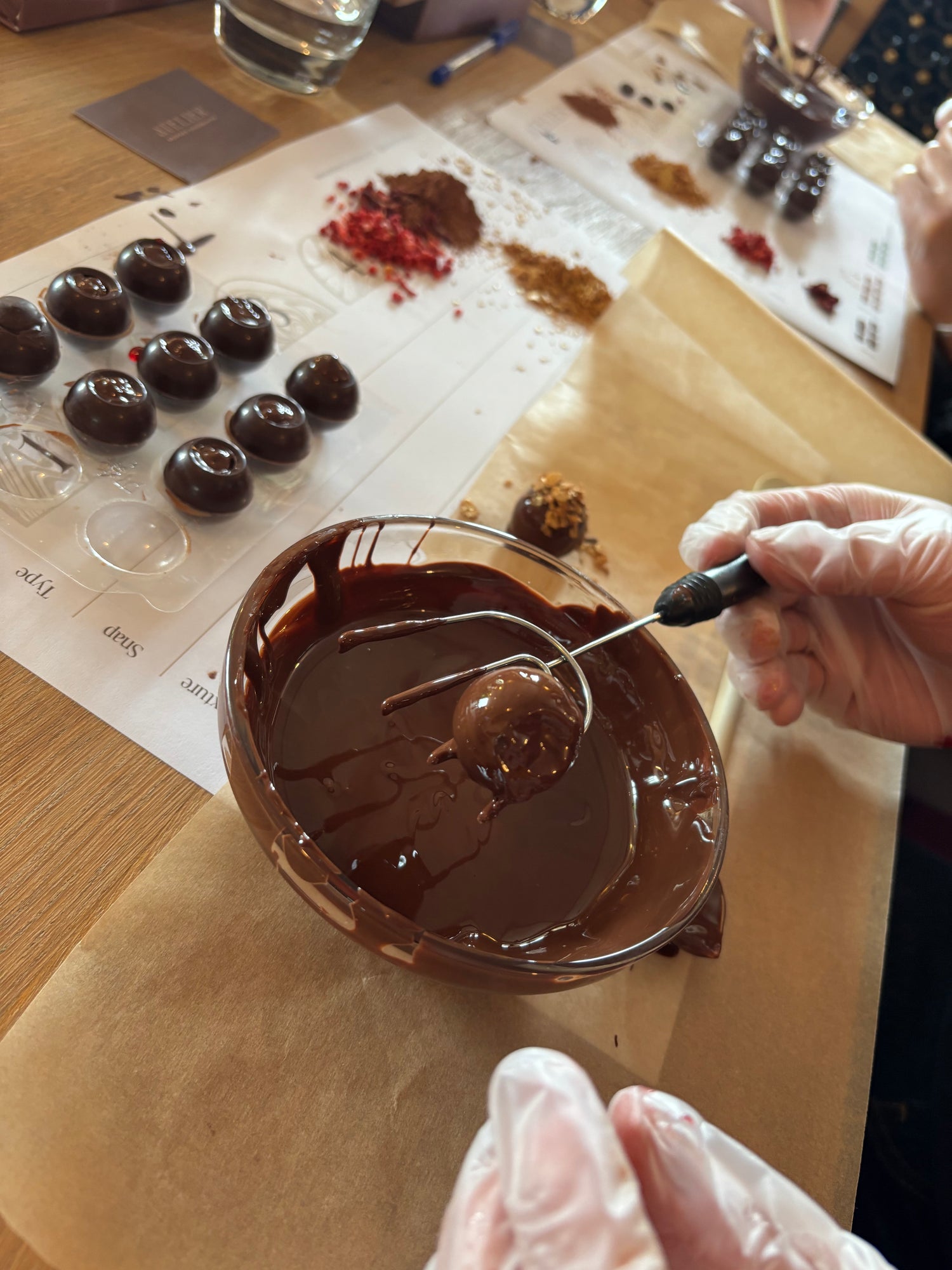 Once you have mastered the basics, you will move on to making your own chocolate truffles. You will have the opportunity to choose from a variety of toppings to create your own unique flavour combinations.
