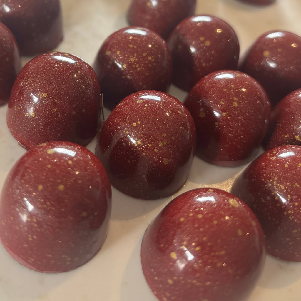 Our Mince Pie Bon Bon is Christmas in a bite. A spiced fruit layer sits atop a smooth 55% dark chocolate ganache, finished with a buttery shortbread base. It captures all the warmth and comfort of a freshly baked mince pie – rich, aromatic and just a little indulgent.
